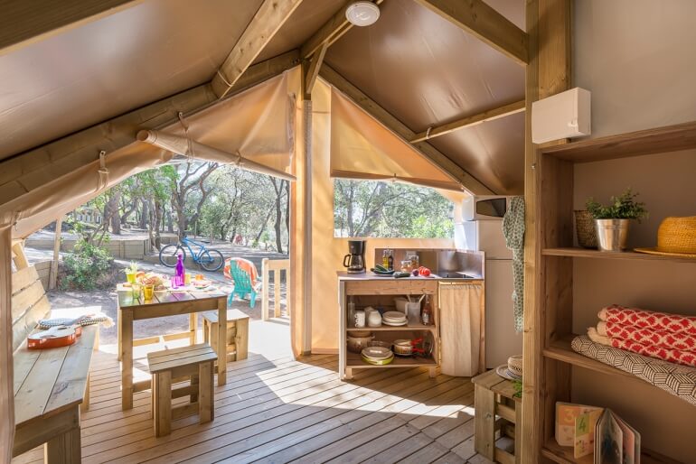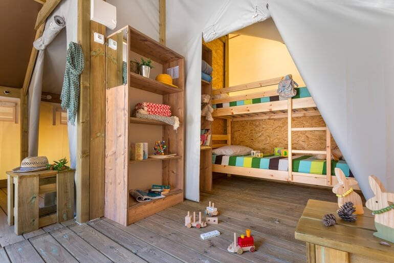 Een perfecte accommodatie voor een weekend, een week of meer… Onze canvas hutten zijn zeer functioneel en combineren comfort en de geest van een vakantie in de buitenlucht.